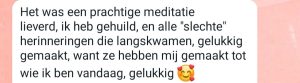 Ik heb zelf inmiddels al heel veel meditaties mogen maken en help jou ook graag om dit te kunnen doen. Je kunt mijn Cursus Maak Je Eigen Meditatie in 4 uren bestellen via onderstaande knop! Hieronder vind je ook een aantal recensies van mijn Meditaties..
